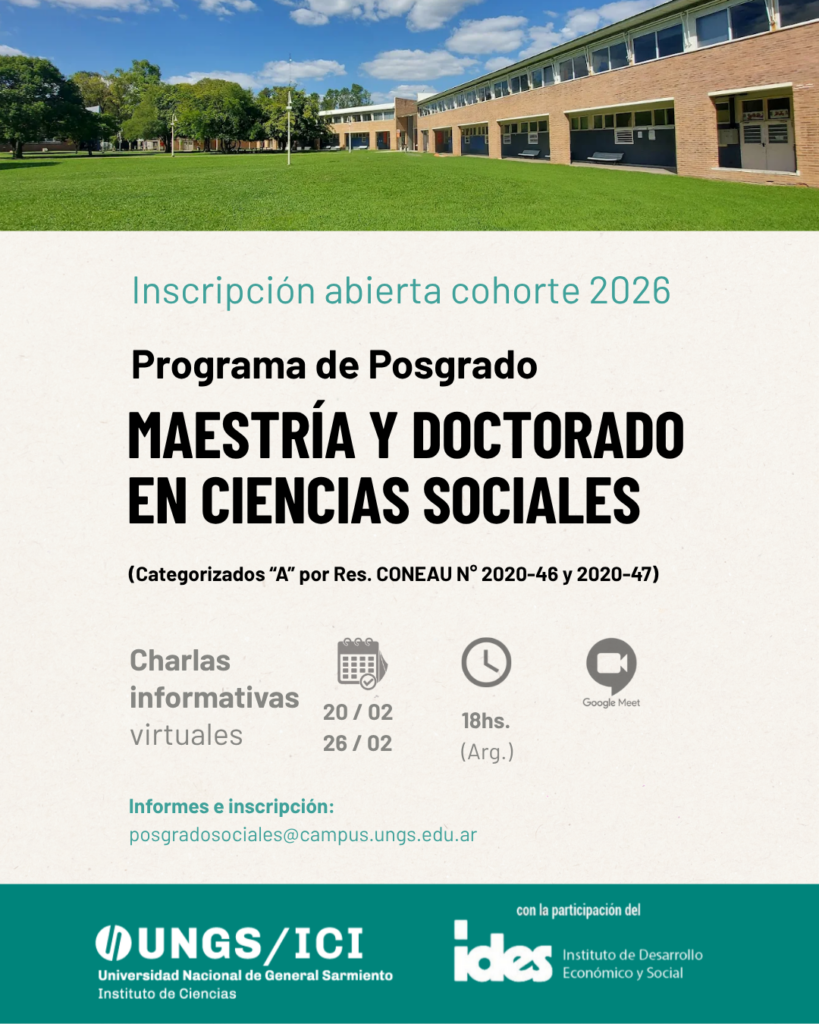 ℹ️ Informes e inscripción: posgradosociales@campus.ungs.edu.ar