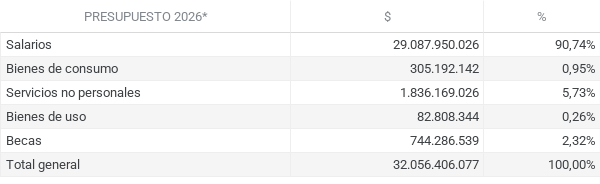 Presupuesto 2026 * Resolución (Consejo Superior) Nº 9791/25 >>> Ver planilla de presupuesto consolidado 2026