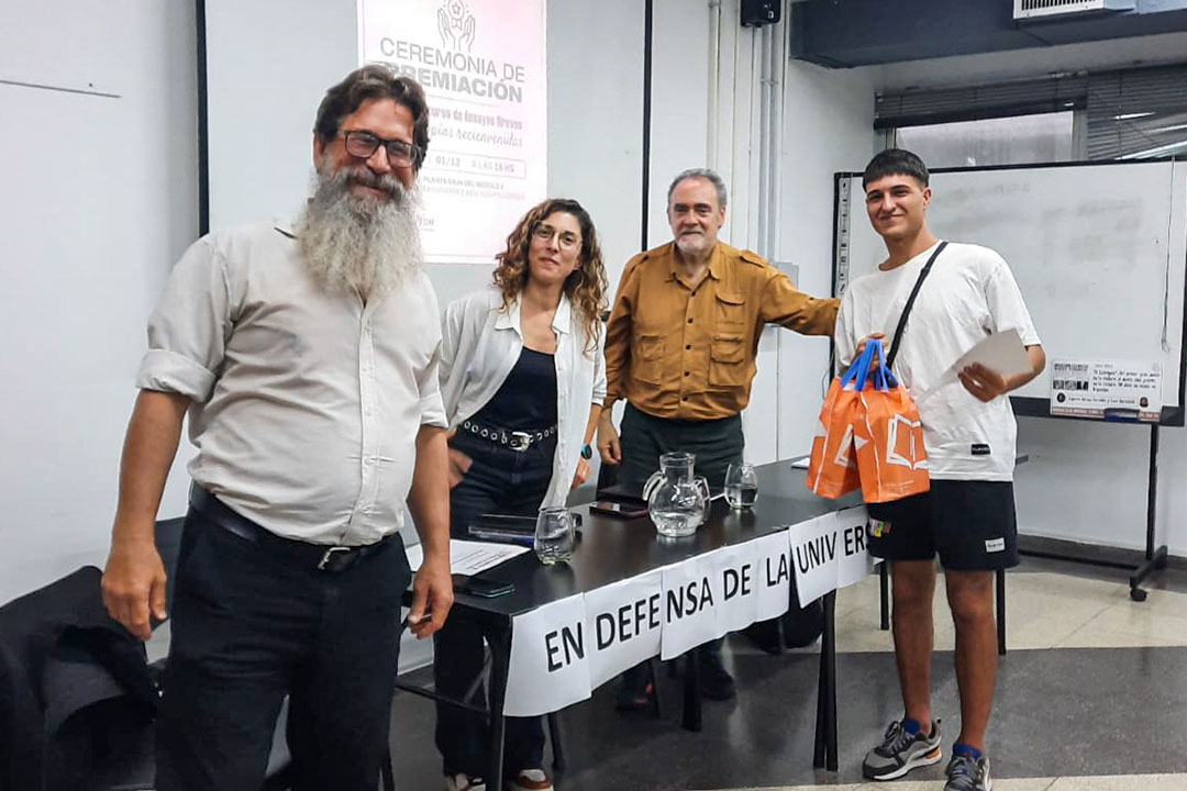 Tatiana Ruiz Díaz, Pablo Sayago, Maximiliano Quiñones fueron premiados, mientras que Brisa Gómez, Valentina Blanco y Agustín Wagner recibieron menciones especiales. Se les entregaron libros publicados por Ediciones UNGS y los seis ensayos serán publicados por la Universidad en un único volumen colectivo.