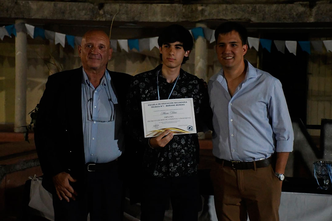 En una experiencia inédita de articulación académica, estudiantes de la Escuela de Educación Secundaria Técnica Nº1 "Mariano Moreno" de Chivilcoy, en la Provincia de Buenos Aires, egresaron del nivel medio con un título universitario en simultáneo: el de la Diplomatura Universitaria en Automatización y Control de Procesos Industriales que dictaron docentes de la UNGS en la institución, en el marco del Programa Puentes.