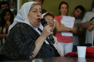 Por otro lado, destacaron que Hebe construyó "sin claudicaciones, el camino de la lucha por los derechos humanos" en el país, que "se convirtió luego en un antecedente fundamental en la instauración del Derecho internacional de los Derechos Humanos".
