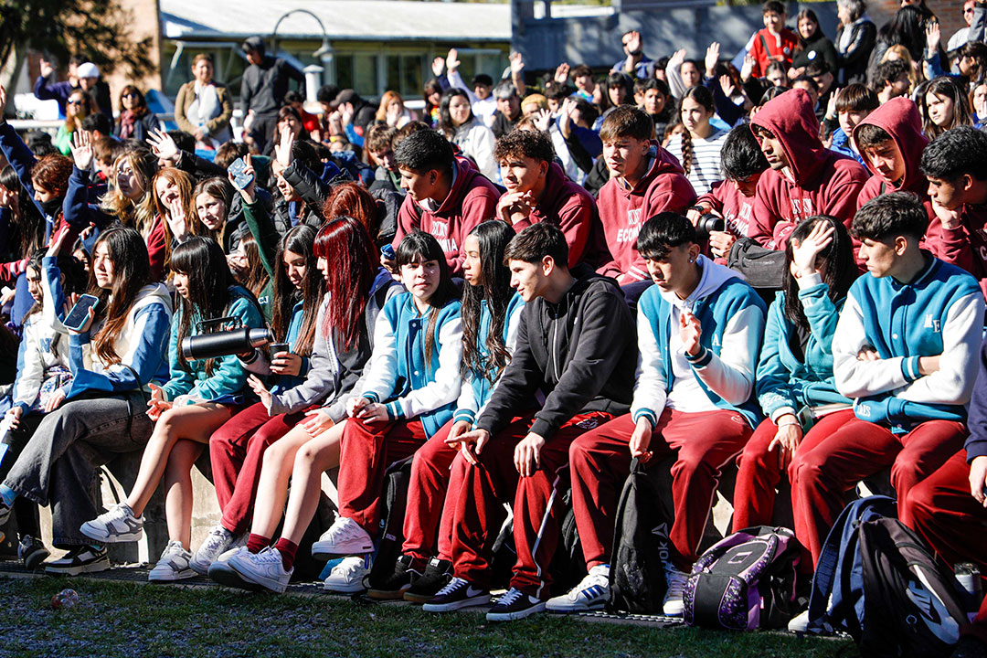 “Hoy van a conocer carreras que ni saben que existen”, les dijo la rectora Flavia Terigi, al darles la bienvenida. Además, el vicerrector Germán Pinazo los convocó a ser parte de la universidad pública y recordó la crisis que atraviesan actualmente las universidades nacionales.
